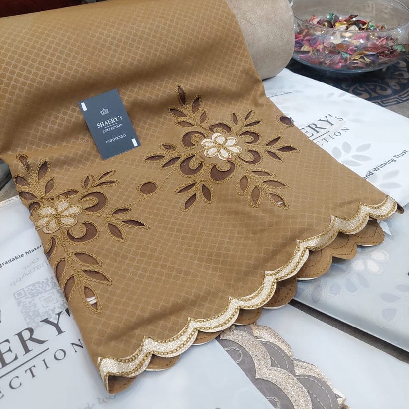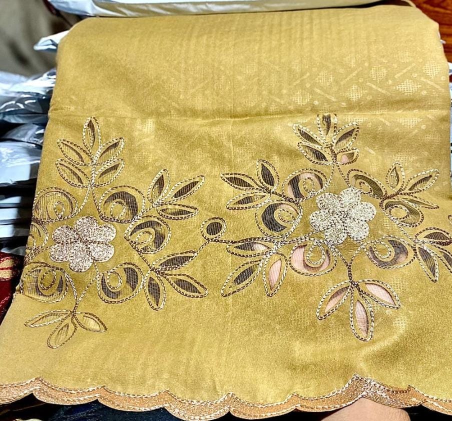 Fabric: Premium Swiss Embroidered Shawls, perfect for all seasons, offering an elegant and lightweight feel.
