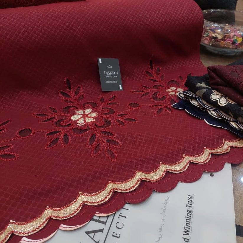 Swiss Lawn Laser Lace Shawl for Women – All-Season Comfort | New 2025 Summer Collection, Red Ember