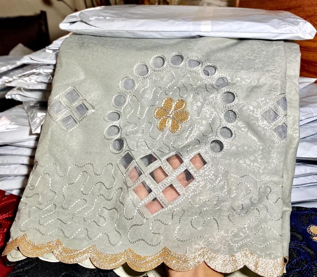 Fabric: Premium Swiss Embroidered Shawls, perfect for all seasons, offering an elegant and lightweight feel.