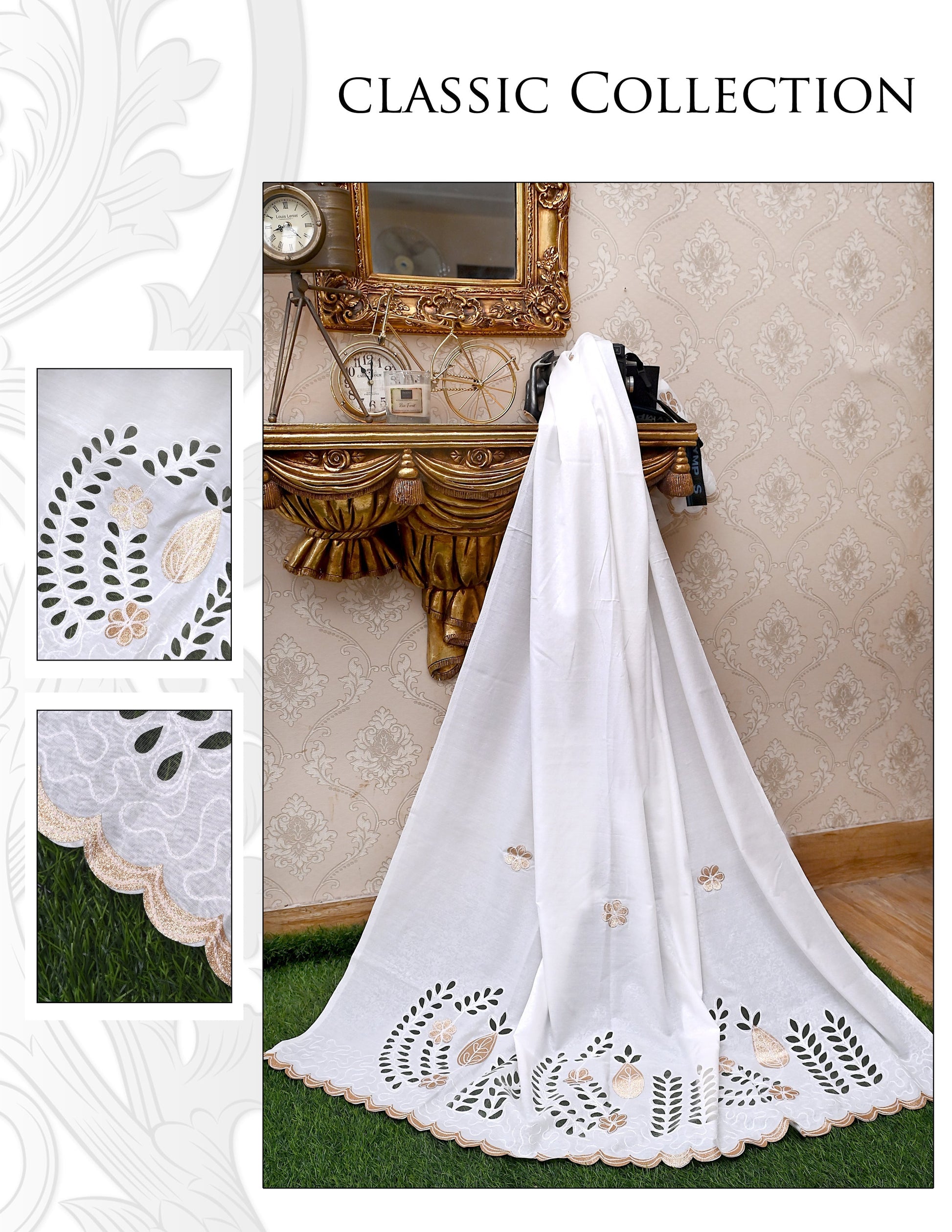 Swiss Lawn Laser Lace Shawl for Women – All-Season Comfort | New 2025 Summer Collection, Snow White